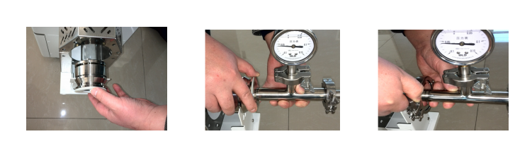 4、氣路總成與石英爐管的連接:將隨機附件盲板密封墊對齊貼在石英爐管法蘭口面上,然后將氣路總成的盲板面對齊壓在一起,再用適配的卡箍卡緊,保證氣密性就好了。